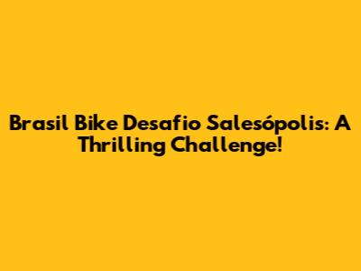 Brasil Bike Desafio Salesópolis: A Thrilling Challenge!