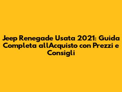Ciao amici appassionati di motori! Se state pensando di acquistare una Jeep Renegade usata del 2021, siete capitati nel posto giusto. In questa guida completa, esploreremo tutto ciò che c'è da sapere su questa vettura iconica, dai prezzi medi del mercato dell'usato fino ai consigli pratici per fare un affare, passando per le offerte più interessanti. Preparatevi a scoprire come scegliere la Renegade perfetta per le vostre esigenze, evitando sorprese e massimizzando il vostro investimento. Che siate alla ricerca di un'auto per l'avventura o per la vita di tutti i giorni, la Renegade del 2021 potrebbe essere la scelta ideale. Allora, siete pronti a partire?