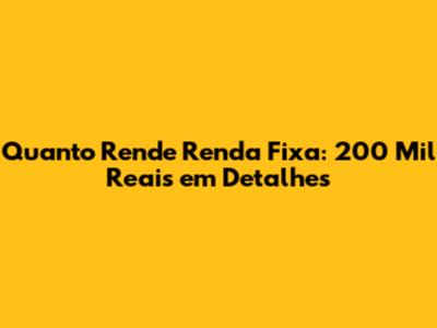 Quanto Rende Renda Fixa: 200 Mil Reais Em Detalhes